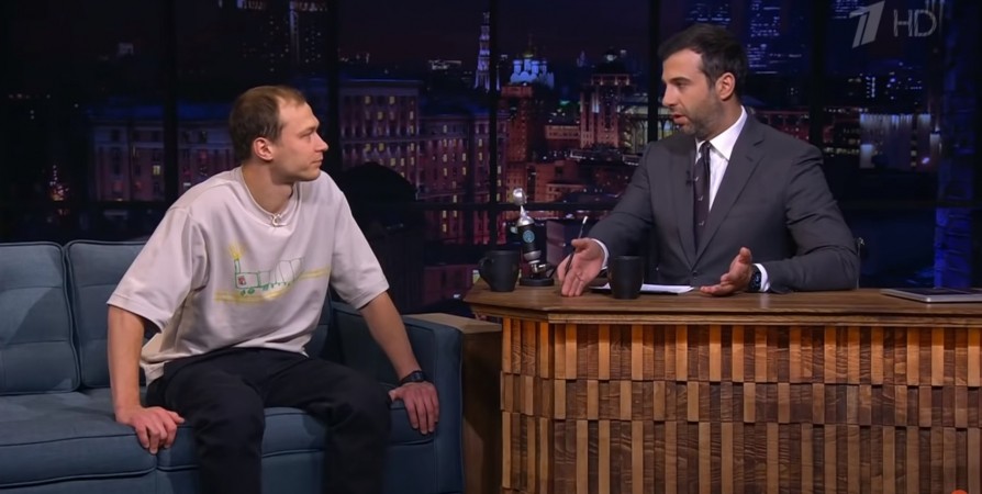 В конце интервью Иван Ургант вместе с актером разыграли импровизационную сценку в купе поезда.