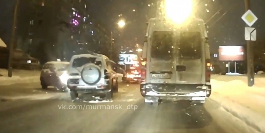 В Мурманске произошло ДТП. На дороге по улице Карла Маркса столкнулись три автомобиля.