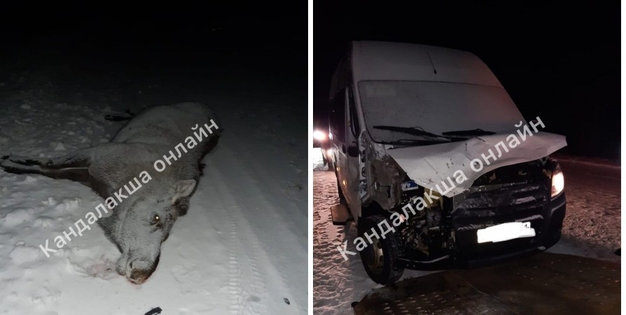 На трассе под Кандалакшей лось попал под колеса микроавтобуса и погиб. По информации группы ВК «Кандалакша онлайн», автомобиль получил технические повреждения, а водитель не пострадал.