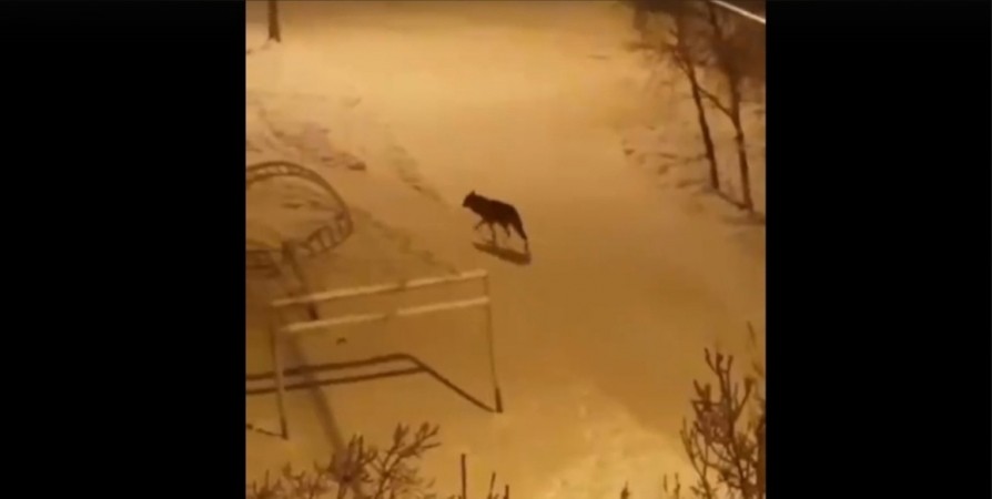 В Оленегорске местные жители вновь заметили на улицах города волка. Видео с прогуливающимся по детской площадке на улице Парковой диким зверем выложила в социальной сети «ВКонтакте» жительница города.
