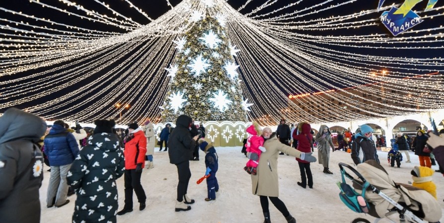 Сегодня в Мурманске на площади Пять Углов прошли традиционные гуляния, посвященные зажжению огней на главной елке столицы Заполярья.