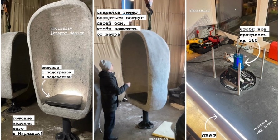 Студия бредового проектирования из Санкт-Петербурга design unit 4 в своем аккаунте instagram показала готовое изделие, отметив, что сидение с подогревом и подсветкой. Отмечается, что скамейка будет вращаться вокруг своей оси на 360 градусов для выполнения своей функции.