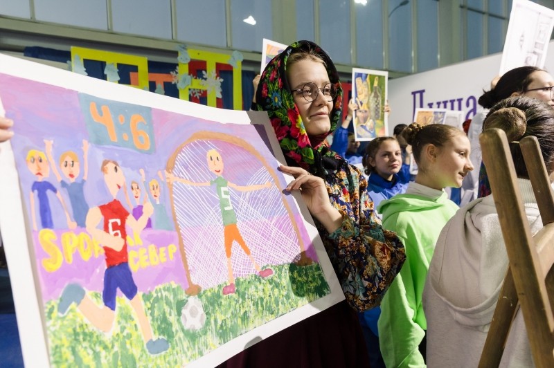 Для торжественного чествования волонтеров Заполярья в легкоатлетическом манеже организовали масштабную программу, включавшая в том числе представление иммерсивного театра, нетворкинг, работу информационной и фотозон, викторину, концертную программу.