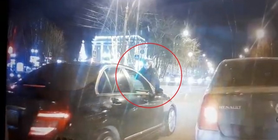 На кадрах с места событий видно, что от побега мужчину пытались остановить, встав перед его машиной и снимая на камеру лица пассажирки и водителя.