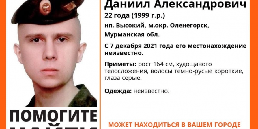 Отмечается, что с 7 декабря 2021 года местонахождение молодого человека не известно.