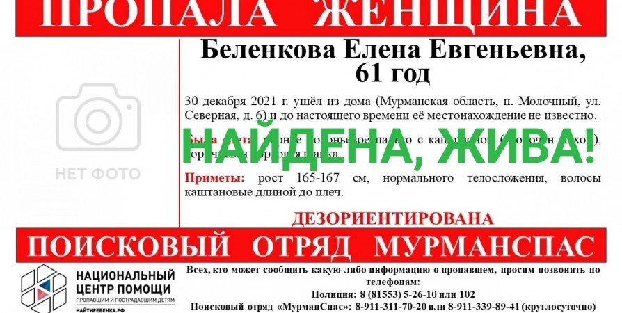 Напомним, северянка 30 декабря 2021 года ушла из дома по улице Северная. 2 января была обнародована ориентировка, а накануне около 18 часов стало известно, что поиски завершены благополучным итогом.