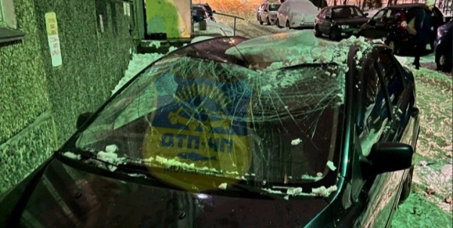 Местные жители предполагают, что ледяная глыба упала на авто с одного из балконов дома.