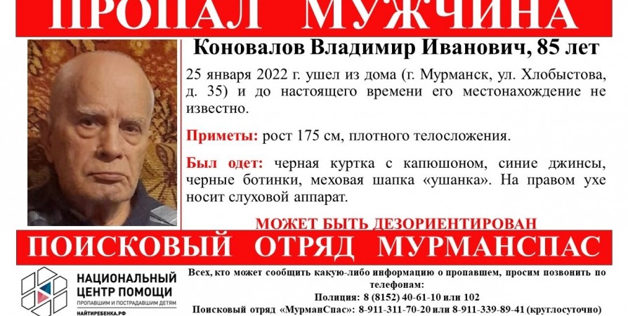 Всех, кто обладает какой-либо информацией, просят сообщить об этом в полицию или в поисковый отряд «МурманСпас».