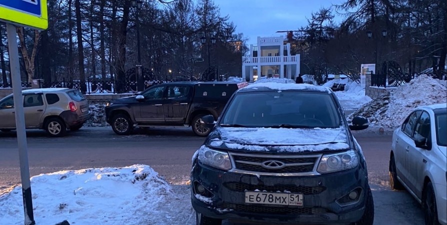 Водитель припарковал авто на переходе в центре Мурманска. Местная жительница опубликовала в социальных сетях фотографию машины и сообщила, что случайно задела автомобиль, когда переходила дорогу.