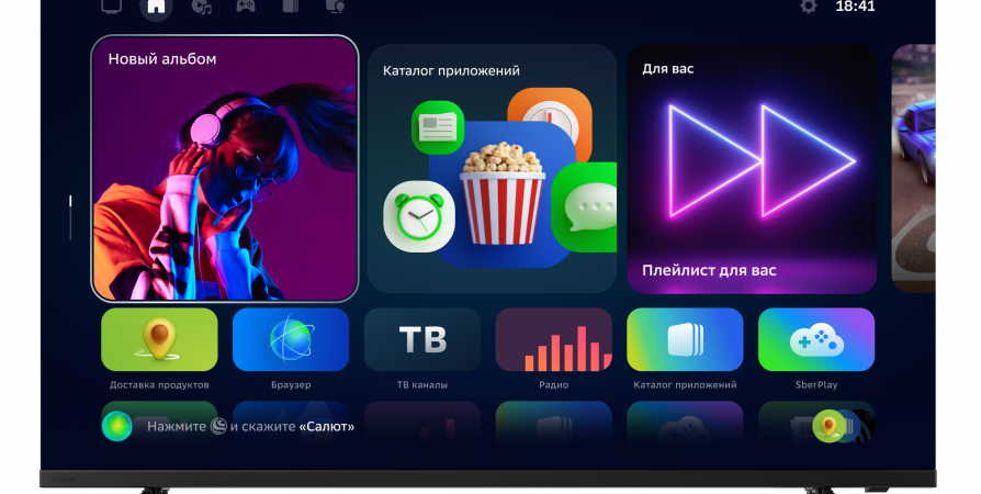 Сбер и М.Видео-Эльдорадо представили на российском рынке телевизоры под брендом Sber, работающие на операционной системе Салют ТВ с виртуальными ассистентами от Сбера, которые обеспечивают голосовое управление устройством. Производство и дистрибуцию новых доступных ТВ взяла на себя Группа М.Видео-Эльдорадо (ПАО «М.Видео»). В сетях «М.Видео», «Эльдорадо», а также на СберМегаМаркете уже доступны четыре модели телевизоров с безрамочным дизайном и качеством изображения 4K UHD с диагоналями 43", 50", 55", 65" по цене от 32 999 рублей, открывающие простой доступ к множеству сервисов экосистемы Сбера - от онлайн-кинотеатра до заказа еды с большого экрана.