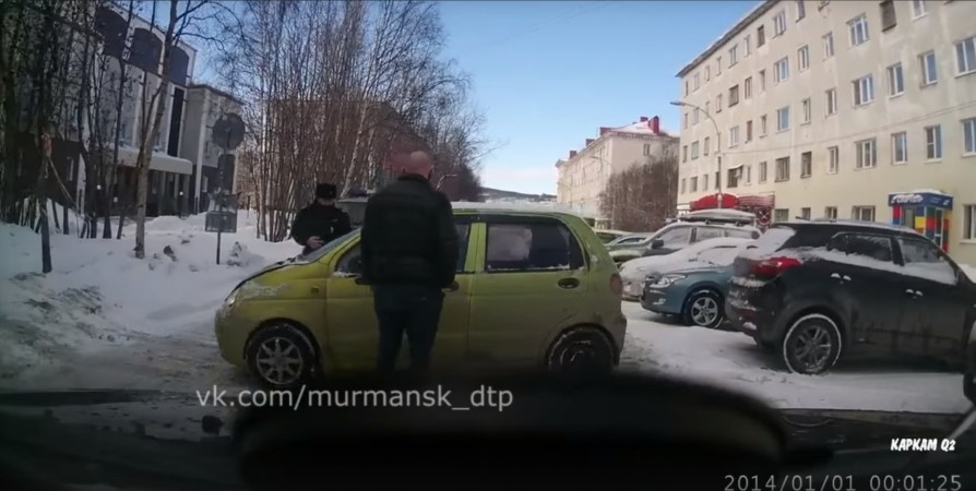 На кадрах видно, как водитель иномарки марки Daewoo Matiz предположительно пытается выехать с парковочного места на дорогу, но вместо этого просто ездит туда-сюда и врезается в припаркованное на другой стороне дороги авто. Отмечается, что рядом также стоял автомобиль сотрудников правоохранительных органов, и полицейские, заметив странные передвижения водителя, вышли из машины и задержали северянина.