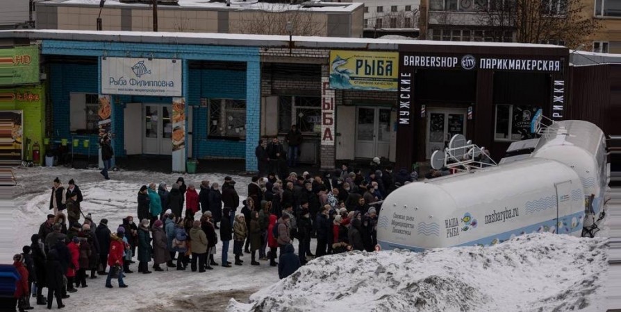 Очевидцы сообщили, что желающие приобрести рыбу по выгодной цене выстроились друг за другом практически до ворот рынка на улице Володарского.
