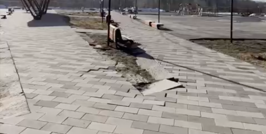 - Из-за таяния снега вымыло в двух местах подложку из песка, из-за чего просела плитка. Сейчас специалисты определяют, чья была вина - либо это просчеты в проекте, либо подрядчик некачественно работу выполнил, - сообщил изданию Ярослав Шалагин.