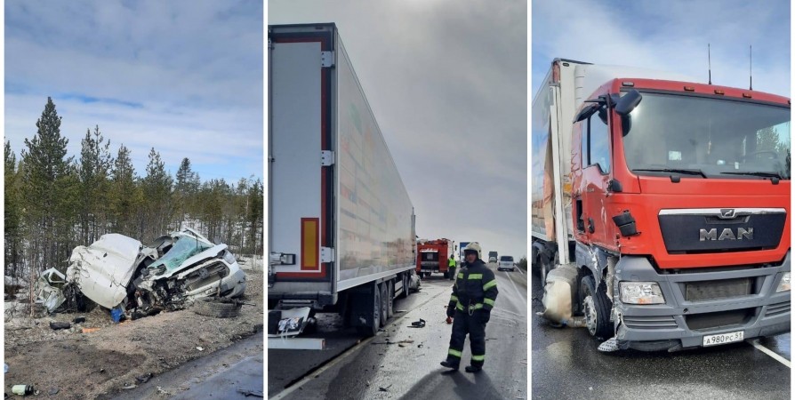 На трассе под Кандалакшей произошло лобовое ДТП с грузовиком, в котором погиб пассажир авто Ford Transit.