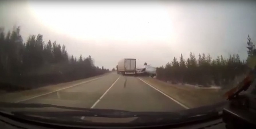 На кадрах видно, что Ford Transit выехал на встречную полосу, где в этот момент ехал грузовой автомобиль MAN. Водитель большегруза попытался увернуться, также выехав на полосу встречного движения, но столкновения не удалось избежать.