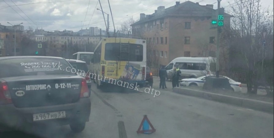 В Мурманске на спуске с Семеновского озера произошло массовое ДТП с участием легкового автомобиля, троллейбуса и маршрутки. Об этом в социальных сетях сообщили местные жители.
