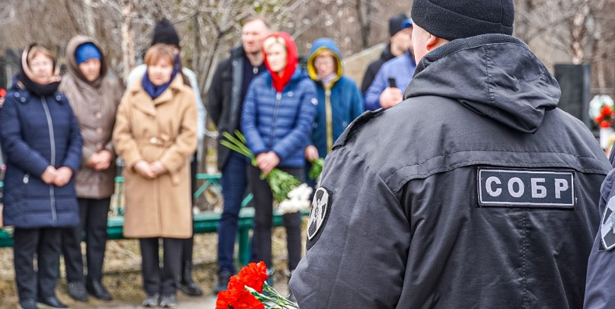 На Аллее Славы в Мурмашах состоялся траурный митинг, посвященный годовщине гибели бойцов СОБР «Росомаха» Росгвардии подполковника полиции Сергея Викторовича Фундамента и майора полиции Виталия Викторовича Лиханова.