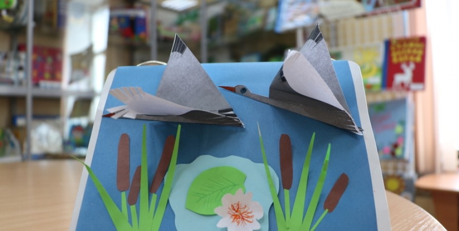 - Ребята в дружном коллективе будут создавать весеннюю аппликацию из цветной бумаги и картона в виде летящих над озером серых журавлей. Именно они прилетают в Мурманскую область в начале мая и начинают обустраивать свои гнёзда. Озеро будет оформлено кувшинкой из белой бумаги и камышами из бархатной бумаги, - рассказали организаторы.