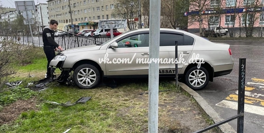 В Мурманске утром водитель снес забор на перекрестке улицы Полярные Зори и проспекта Ленина. Об этом в социальных сетях сообщили очевидцы произошедшего.