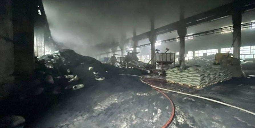 В результате пожара здание закопчено по всей площади, частично сгорели оконные рамы, сгорел аппарат по переработке резиновых опилок, горела резиновая крошка на площади 300 кв. м. Также обгорел вентиляционный канал аппарата и кровля здания на площади 5 кв. м.