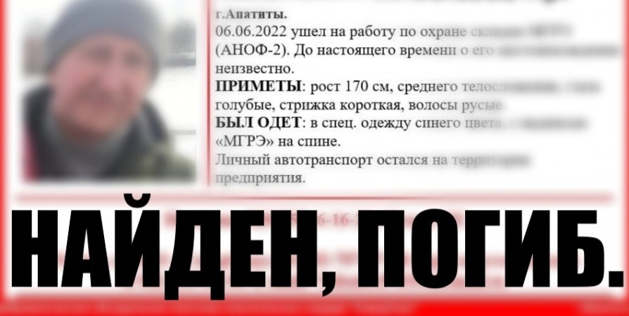 Пропавший 6 июня 64-летний житель Апатитов был найден, но погиб. Об этом сообщили волонтеры ДО ПСО СеверСпас.
