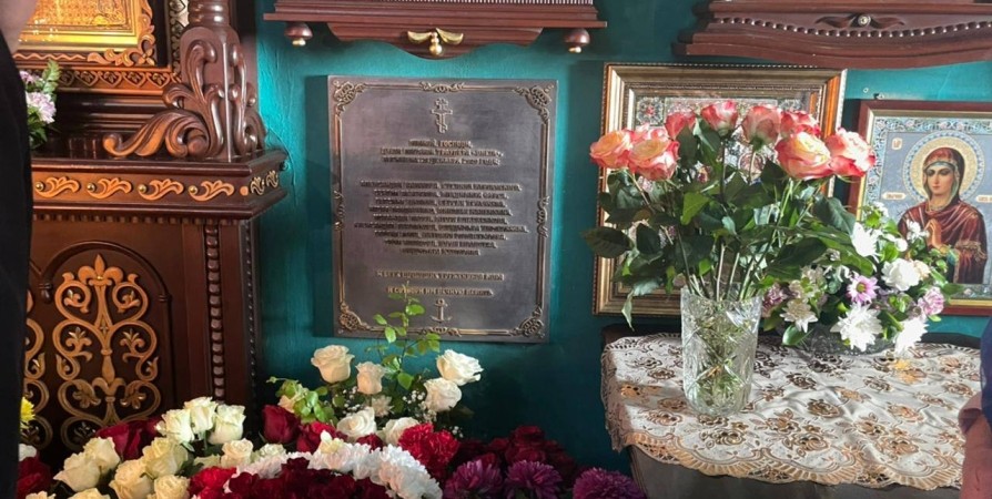 Настоятель морского храма Спас на Водах Андрей Амелин рассказал, что дощечка с именами погибших была заказана в Воронеже на заводе, на котором ранее изготовили колокола храма.
