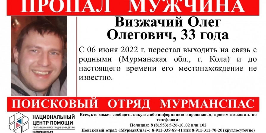 - С 6 июня Олег Олегович Визжачий из города Кола перестал выходить на связь с родными. До настоящего момента его местонахождение не известно, - сообщили добровольцы.