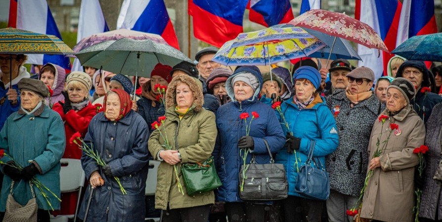 Традиционный митинг прошел у мемориала, посвященного стойкости и мужеству мурманчан в годы Великой Отечественной войны.