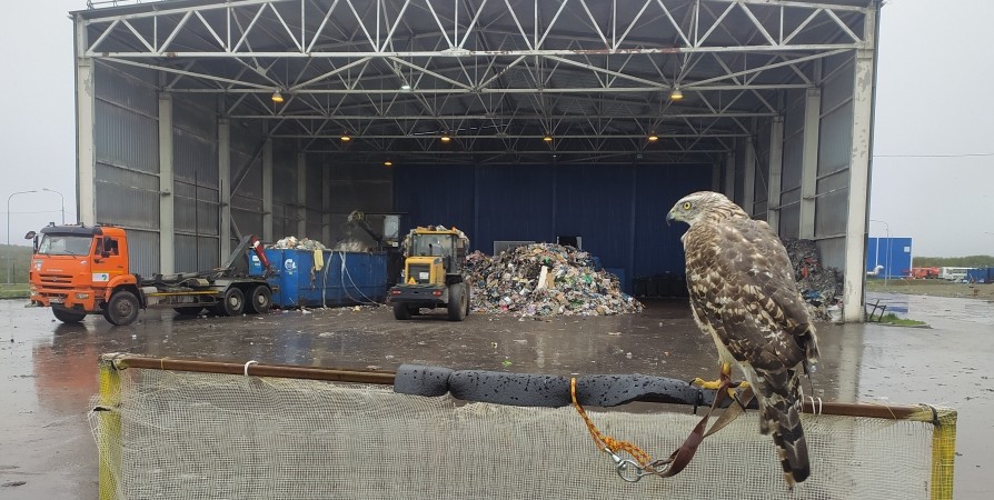 Отмечается, что серебристых чаек, которые круглосуточно поедают и разносят по окрестностям отходы, днем отгоняют защитники Экотехнопарка - ястребы-тетеревятники Дарвин и Кассиопея. Им помогают специальные средства, которые создают шум и свет, такие как лазерная указка, которую особенно не любят чайки. Однако, не смотря на сторонние приспособления, самым эффективным и экологичным методом охраны полигона остается биорепеллентация.