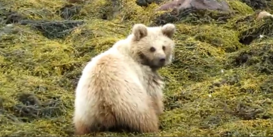 - Медвежонок ловит бельдюгу - это такая длинная змееподобная живородящая рыба. Во время отлива бельдюга может оставаться на морском берегу в небольших лужицах, чаще всего именно в колониях водорослей, где вполне может хватить и воды и еды, - пояснили сотрудники заповедника.