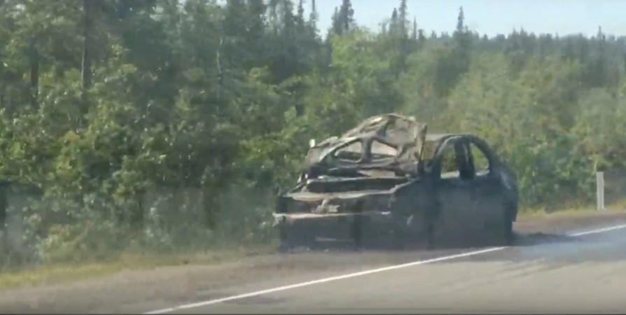 По дороге в аэропорт Мурманска на трассе полыхал автомобиль. Кадрами с места событий поделились местные жители в социальных сетях.