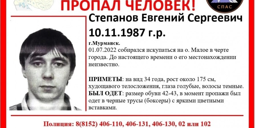 - Степанов Евгений Сергеевич отправился искупаться на озеро Малое в черте города и до настоящего времени о его местонахождении неизвестно, - рассказали волонтеры.