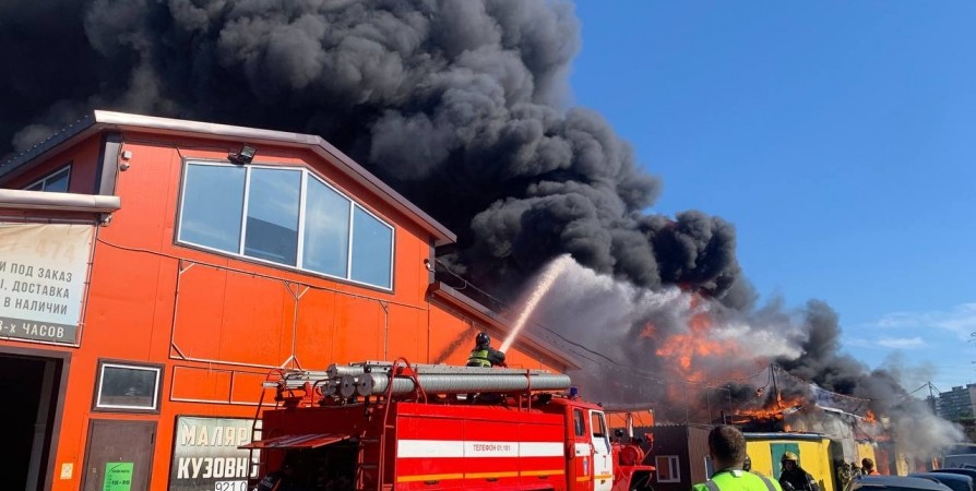 В Мурманске пожарные борятся с огнем в шинном центре на Кольском 183/Б. Как сообщили в ГУ МЧС по Мурманской области, информация о возгорании поступила в 8:43.
