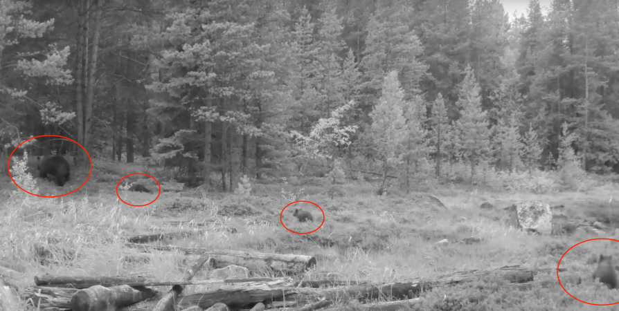 В Кандалакшском заповеднике специалисты через фотоловушку наблюдают за жизнью медведицы с тремя малышами и делятся запечатленными кадрами с подписчиками в своей группе ВК.