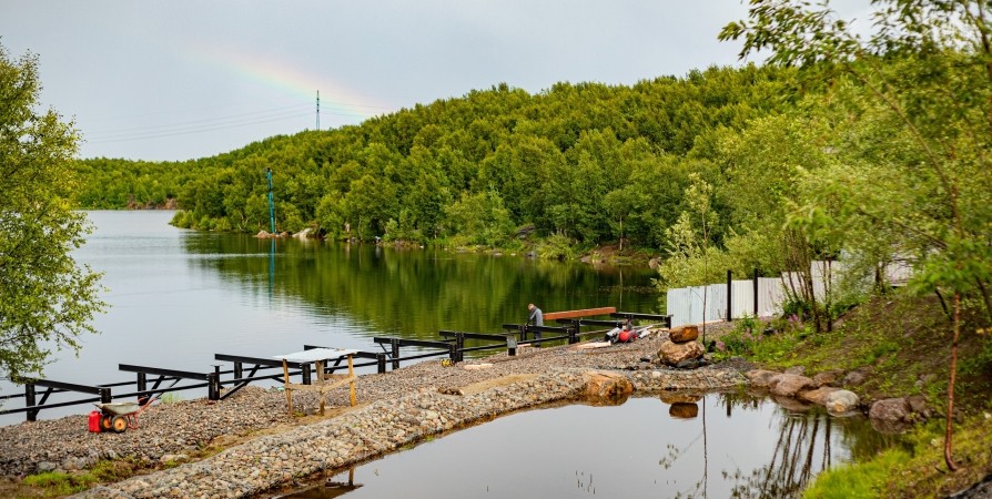 Благоустройство набережной на озере Среднем в Мурманске на улице Мира идет полным ходом.