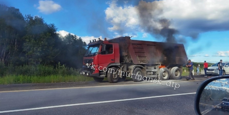 На трассе в сторону Полярного загорелся самосвал, сообщили очевидцы происшествия в соцсетях.