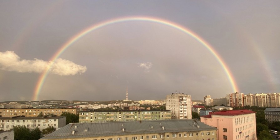 Мурманчан восхитила радуга, которая появилась в небе над городом накануне вечером около 20:20.