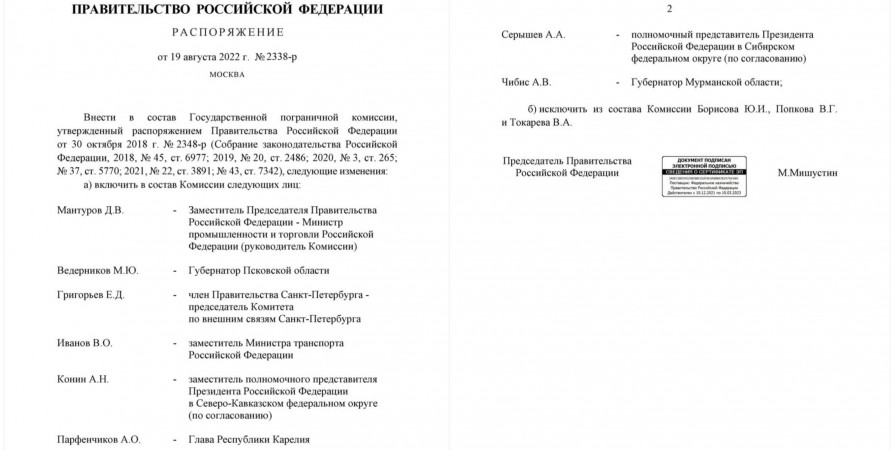 Губернатор Мурманской области Андрей Чибис вошел в состав государственной пограничной комиссии. Это следует из распоряжения правительства Российской Федерации.