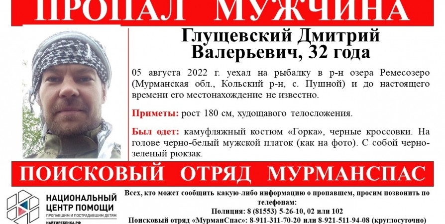 Как сообщили волонтеры МурманСпаса, северянин уехал на рыбалку 2 августа и пропал.