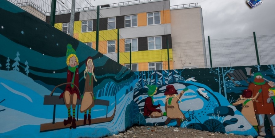 Художница Екатерина Ишбульдина изобразила на подпорной стене детского сада №123 на Достоевского иллюстрацию к «Зимней сказке» финского писателя Сакариаса Топелиуса, а у детского сада у Орликовой №44 - сюжет стихотворения Ирины Ядринцевой про гномов.