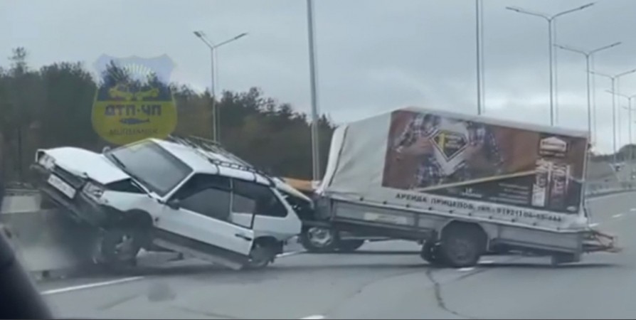 На кадрах с места событий видно, что легковой автомобиль наехал на бетонный отбойник, разделяющий трассу.