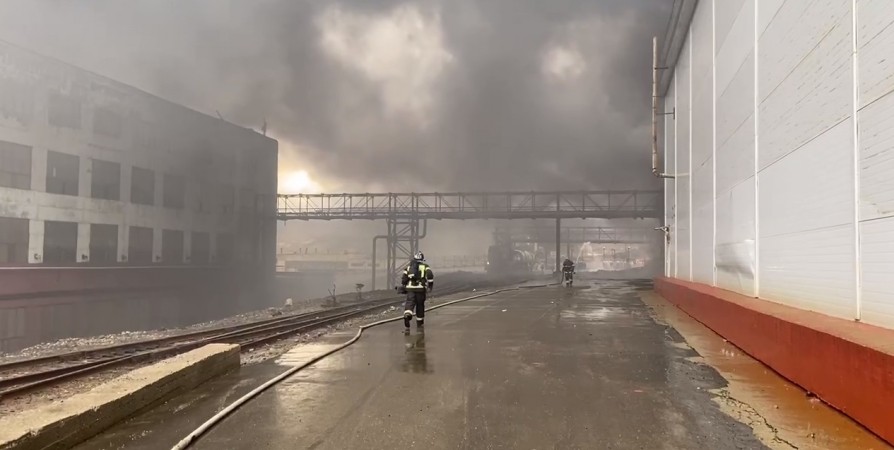 По последним данным, из-за пожара в цеху частично обрушилась кровля.