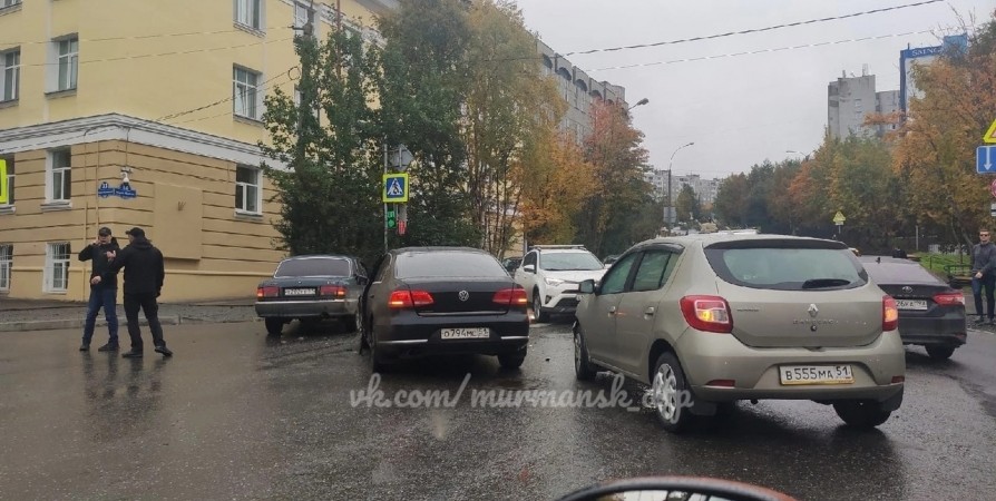 В Мурманске на перекрестке улиц Карла Маркса и Софьи Перовской произошло массовое ДТП. Как сообщили местные жители, столкнулись пять машин.