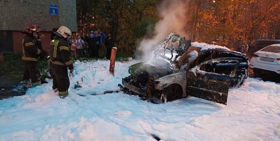 В Мурманске во дворе дома №3 по улице Ушакова огонь уничтожил автомобиль Mazda 3. Информация о возгорании поступила спасателям в 18:54.