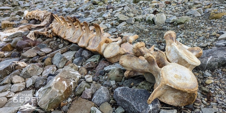На берегу Баренцева моря местный житель нашел часть скелета кита. Фотографиями костей северянин поделился в социальных сетях.