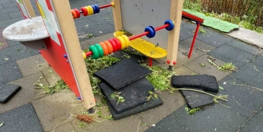 В Североморске на детской площадке в районе дома №19 по улице Сизова неизвестные вандалы повредили покрытие. Об этом в социальных сетях рассказали местные жители.