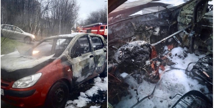 Во дворе дома №17 по улице Героев-Рыбачьего в Мурманске сегодня утром сгорело легковое авто.