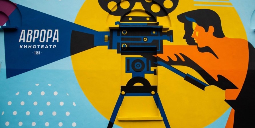 В Мурманске на фасаде кинотеатра «Аврора» художники нанесли изображение оператора со старым пленочным кинопроектором и год постройки кинотеатра - 1956. Работа выполнена с элементами стиля советского плаката.