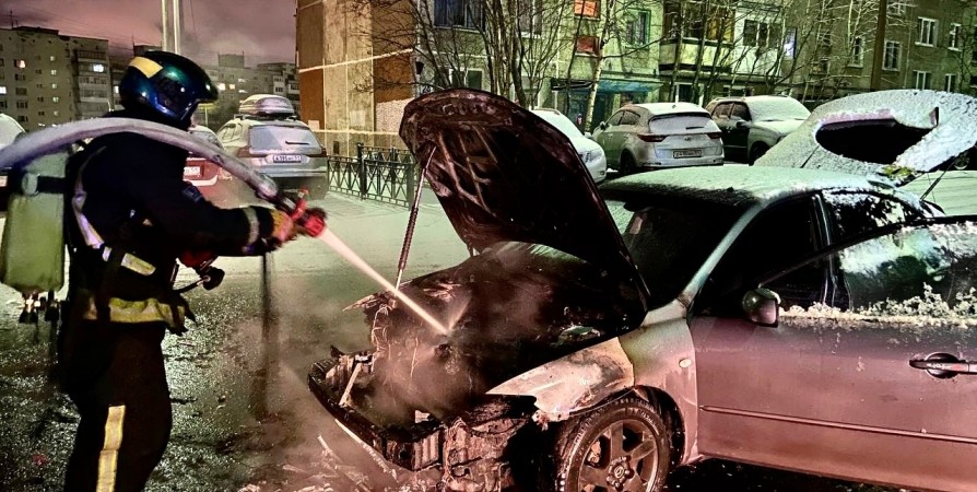 Сегодня утром около 6:17 во дворе дома 29 на улице Зои Космодемьянской в Мурманске вспыхнула легковушка.