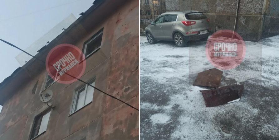 Мурманчане нашли на улице Буркова металлические листы кровли, сорванные с дома №23. Об этом они рассказали в соцсетях.